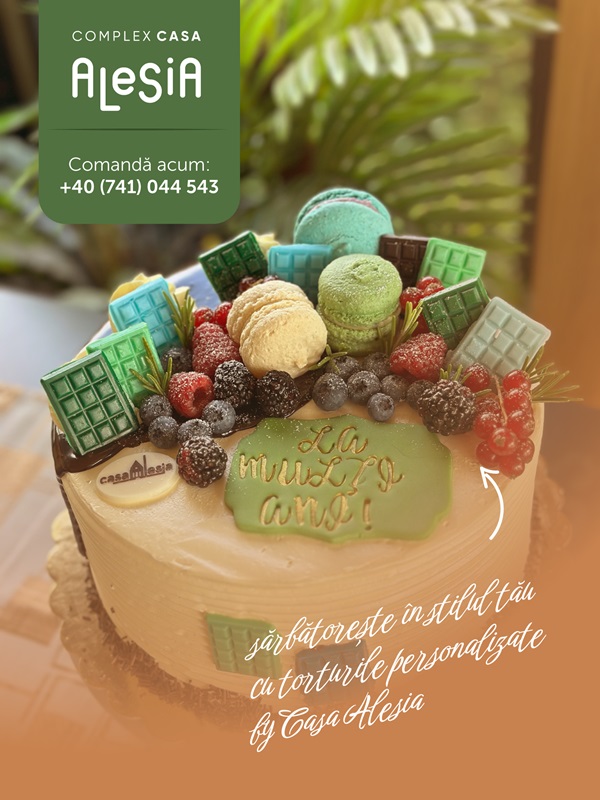 Complex Casa Alesia, pe lângă restaurant și pensiune, oferă și servicii de cofetărie și patiserie – fie pentru consum la locație, fie pentru evenimente, delicioase deserturi precum prăjituri, torturi, candy‑bar etc.: